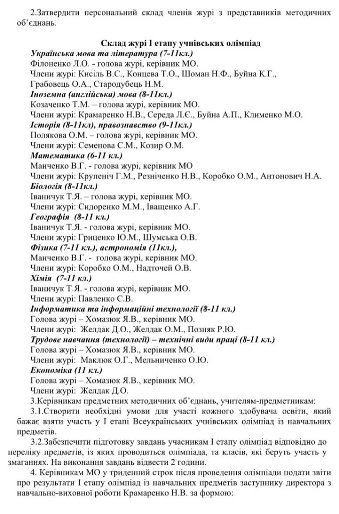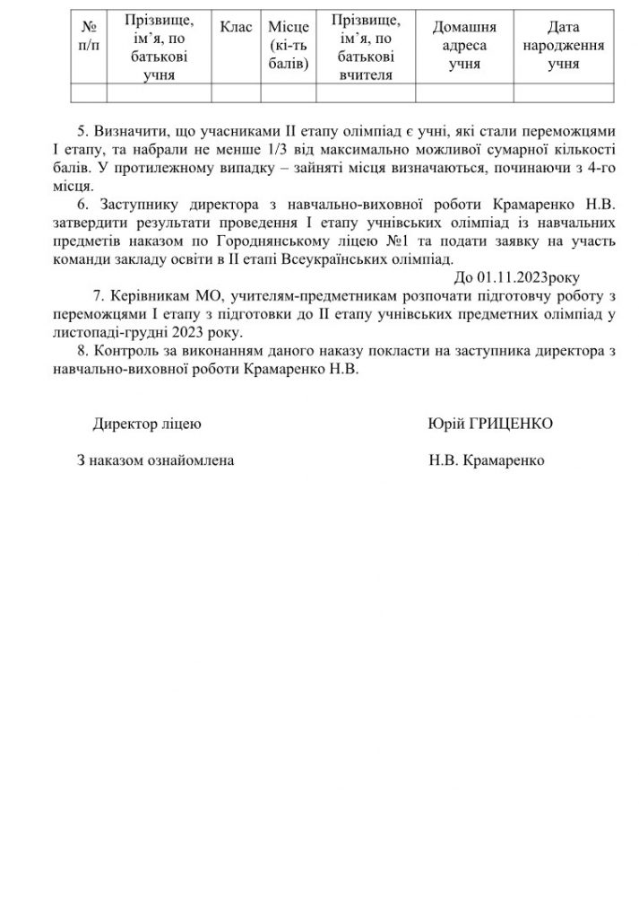 Про проведення І етапу Всеукраїнської учнівської олімпіади із навчальних предметів у 2023-2024 навчальному році 7 Листопада, 2023 Накази, Новини