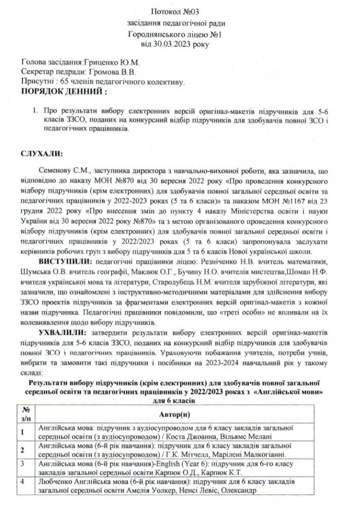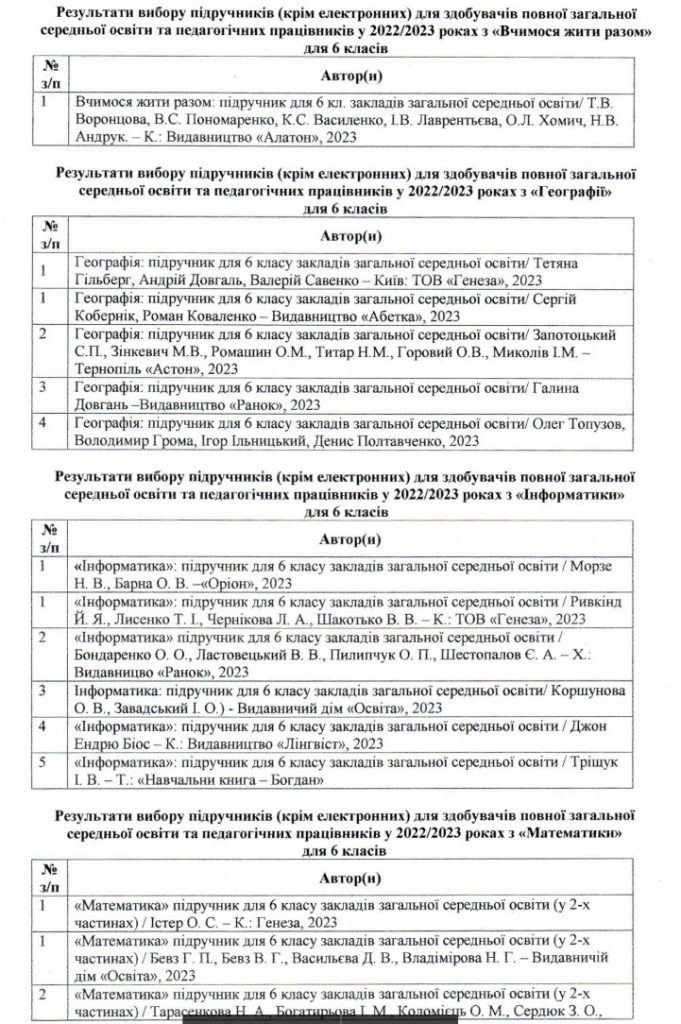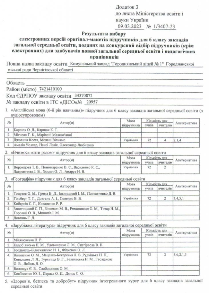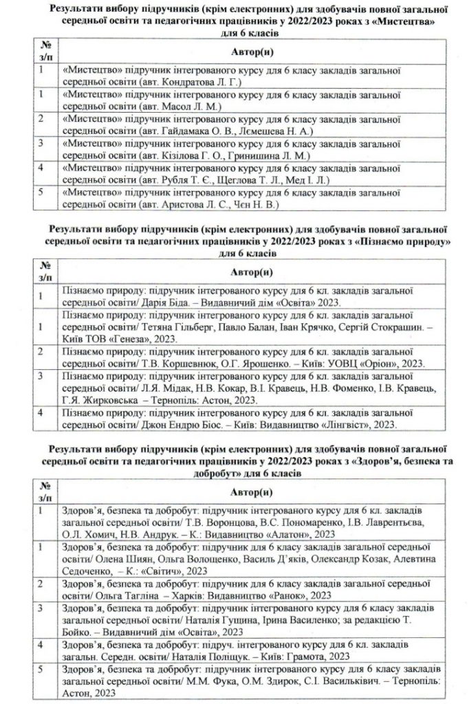 Результати вибору електронний версій оригінал-макетів підручників для 1 класу закладів середньої освіти, поданих на конкурсний відбір підручників