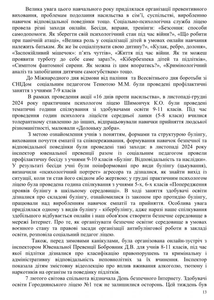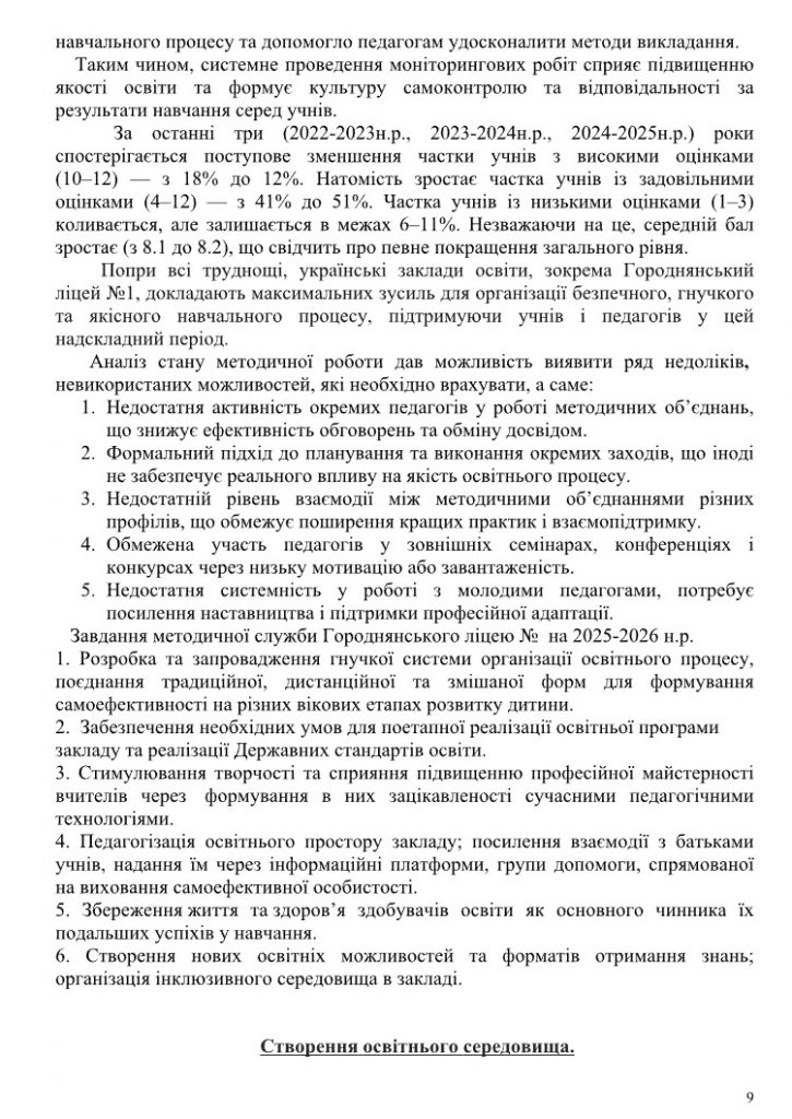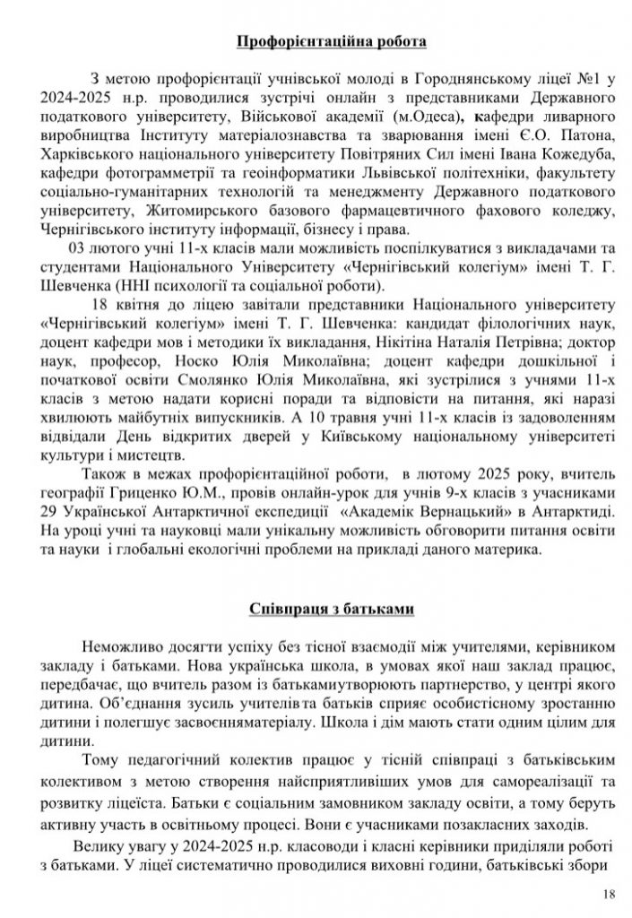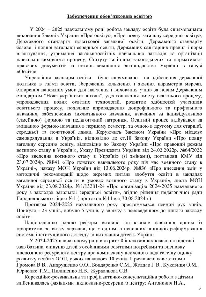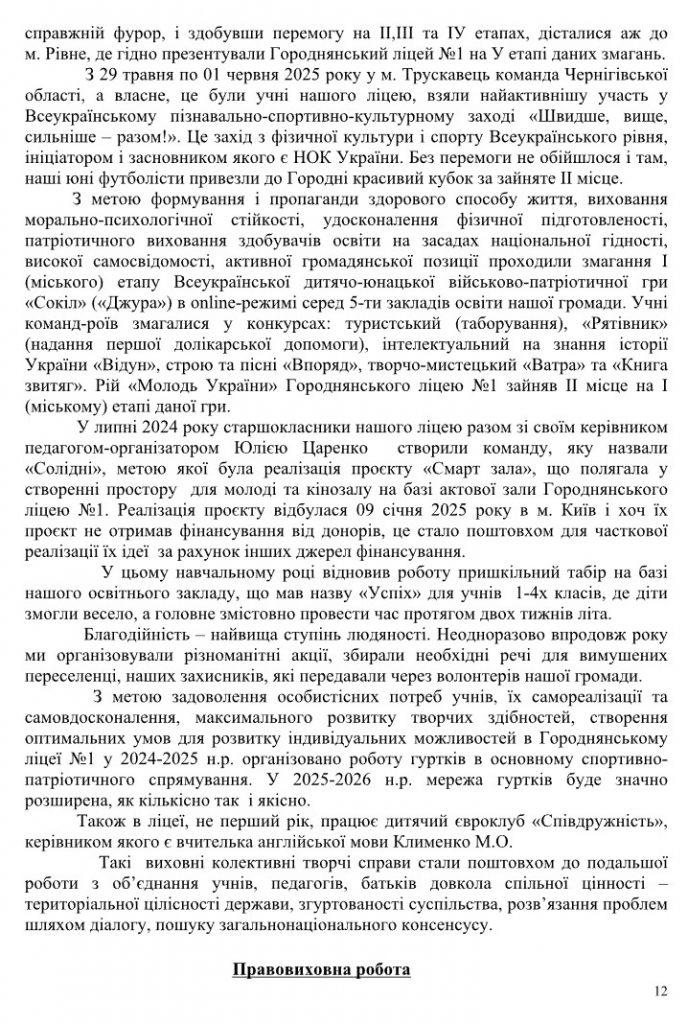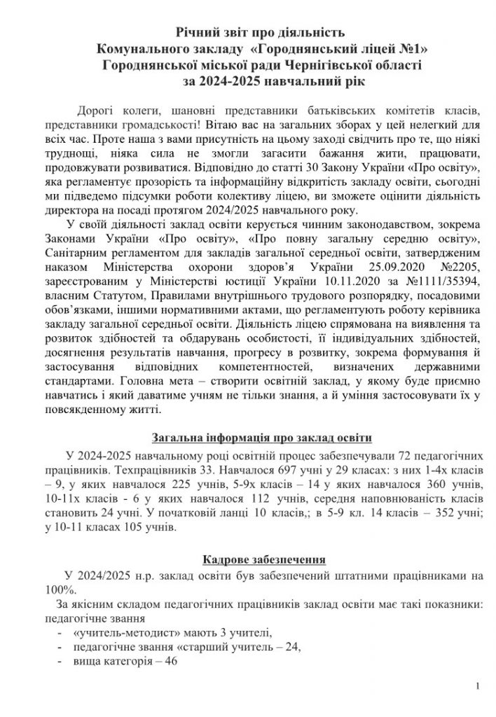 Річний звіт про діяльність Комунального закладу «Городнянський ліцей №1» Городнянської міської ради Чернігівської області за 2024-2025 навчальний рік 28 Серпня, 2025 Новини