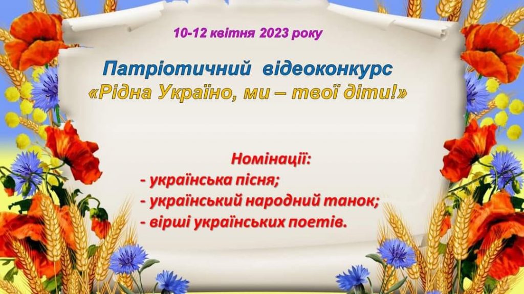 Вже долучилися цього тижня до патріотичного відеоконкурсу “Рідна Україно, ми – твої діти!” в номінації “Вірші українських поетів”, які проводить КПНЗ “Чернігівський Центр національно-патріотичного виховання, туризму та краєзнавства учнівської молоді”, творча група учнів 8-В класу та 5-Б класу: Лось Анастасія, Бірічева Дарія, Павлович Аліна та Слісар Ксенія.